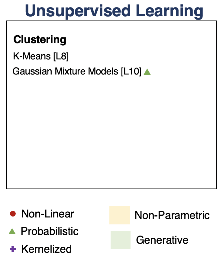 We can perform clustering via density estimation with a GMM model. $$P_\theta (x,z) = P_\theta (x | z) P_\theta (z)$$