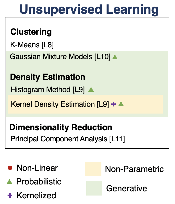 - Non-parametric methods (kernels, nearest neighbors) are also powerful