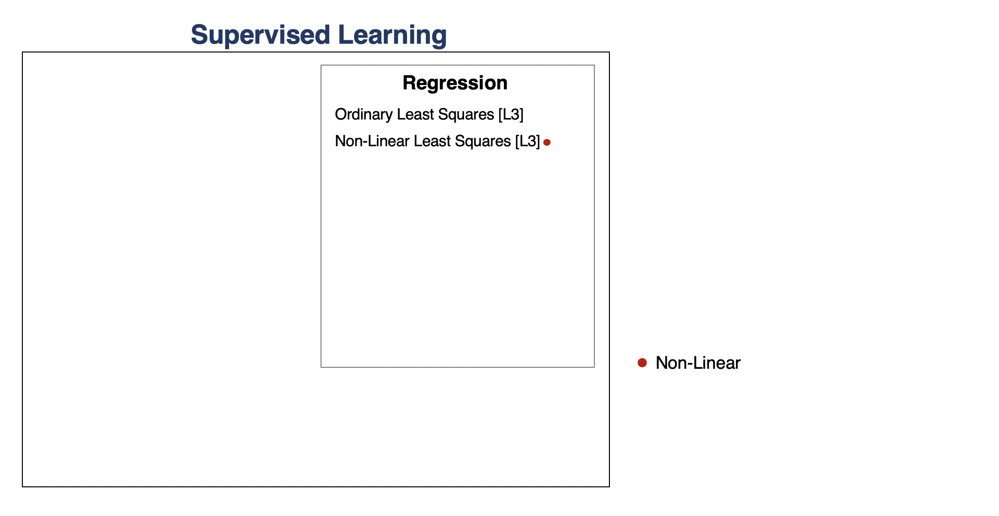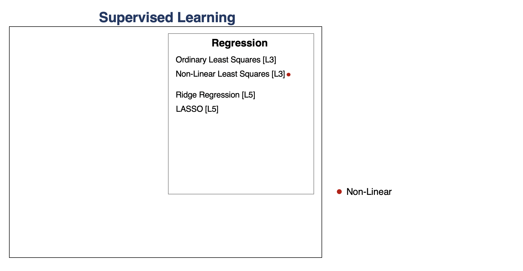 - Regression: The target variable $y \in \mathcal{Y}$ is continuous: $\mathcal{Y} \subseteq \mathbb{R}$.