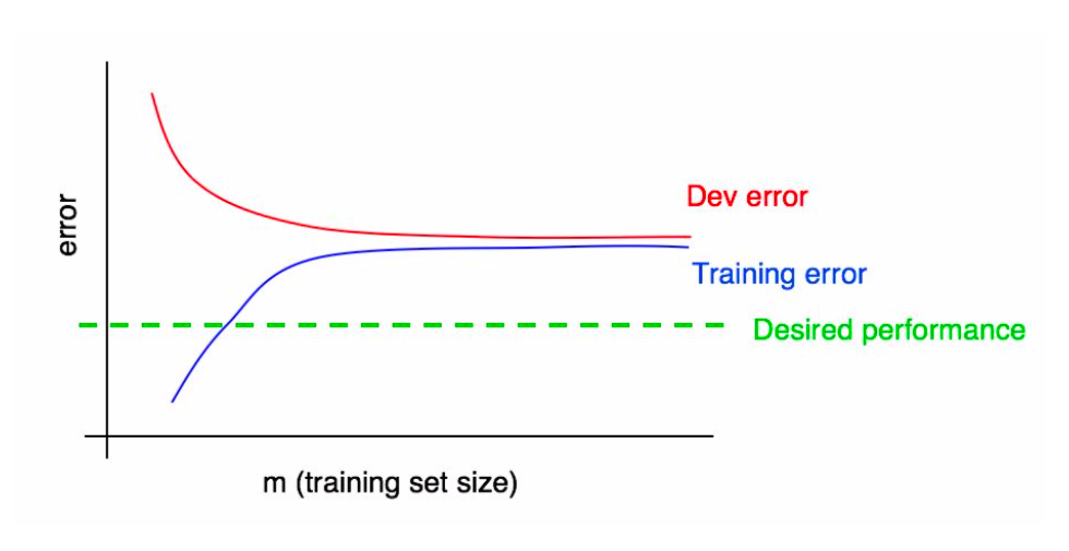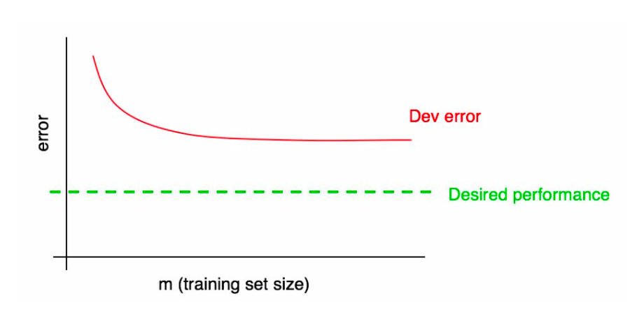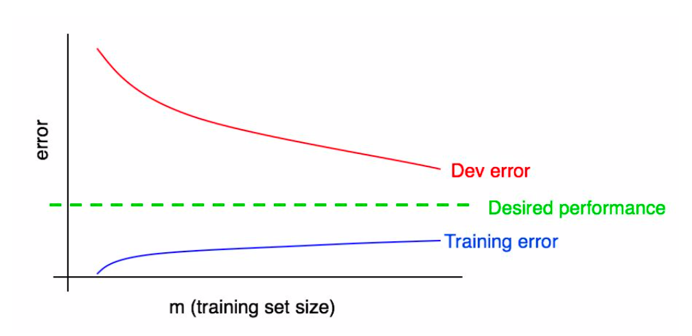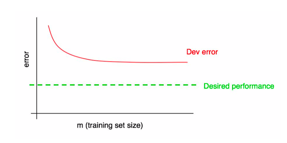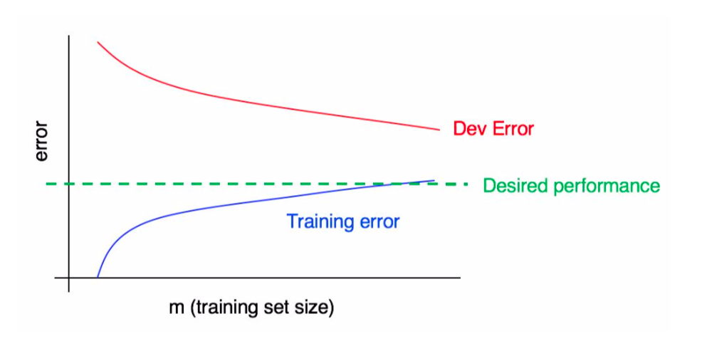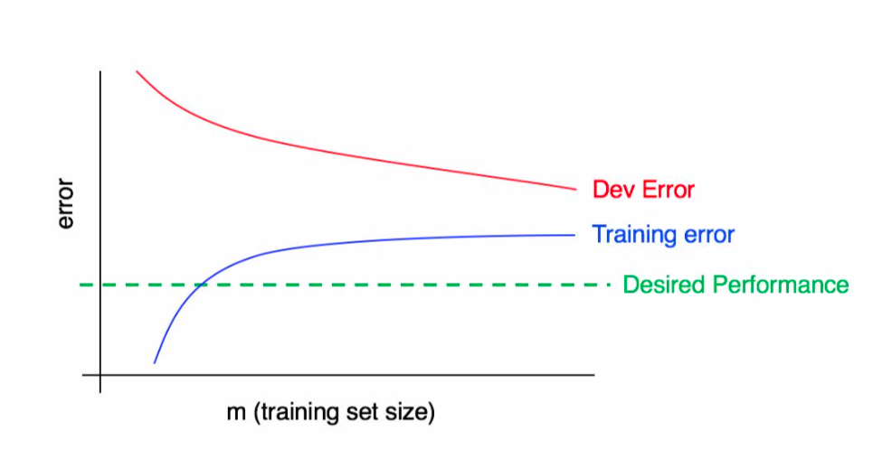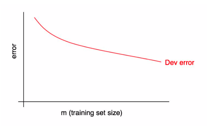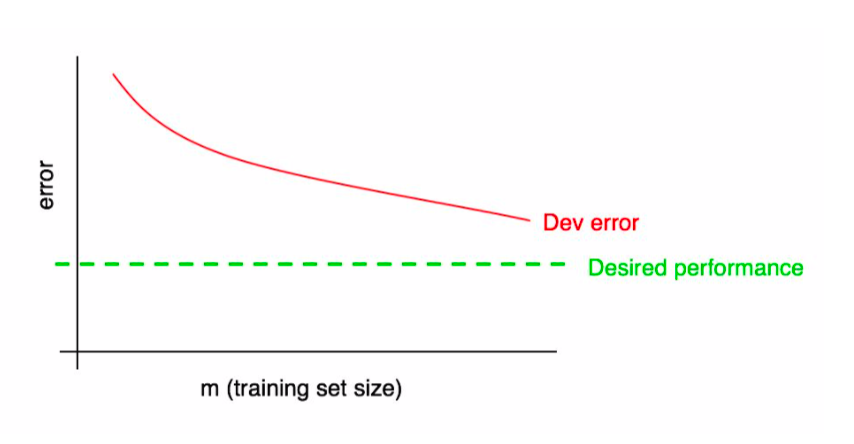 In the example below, the dev error has plateaued and we know that adding more data will not be useful.