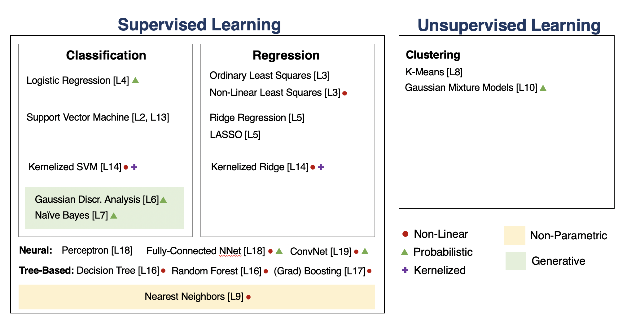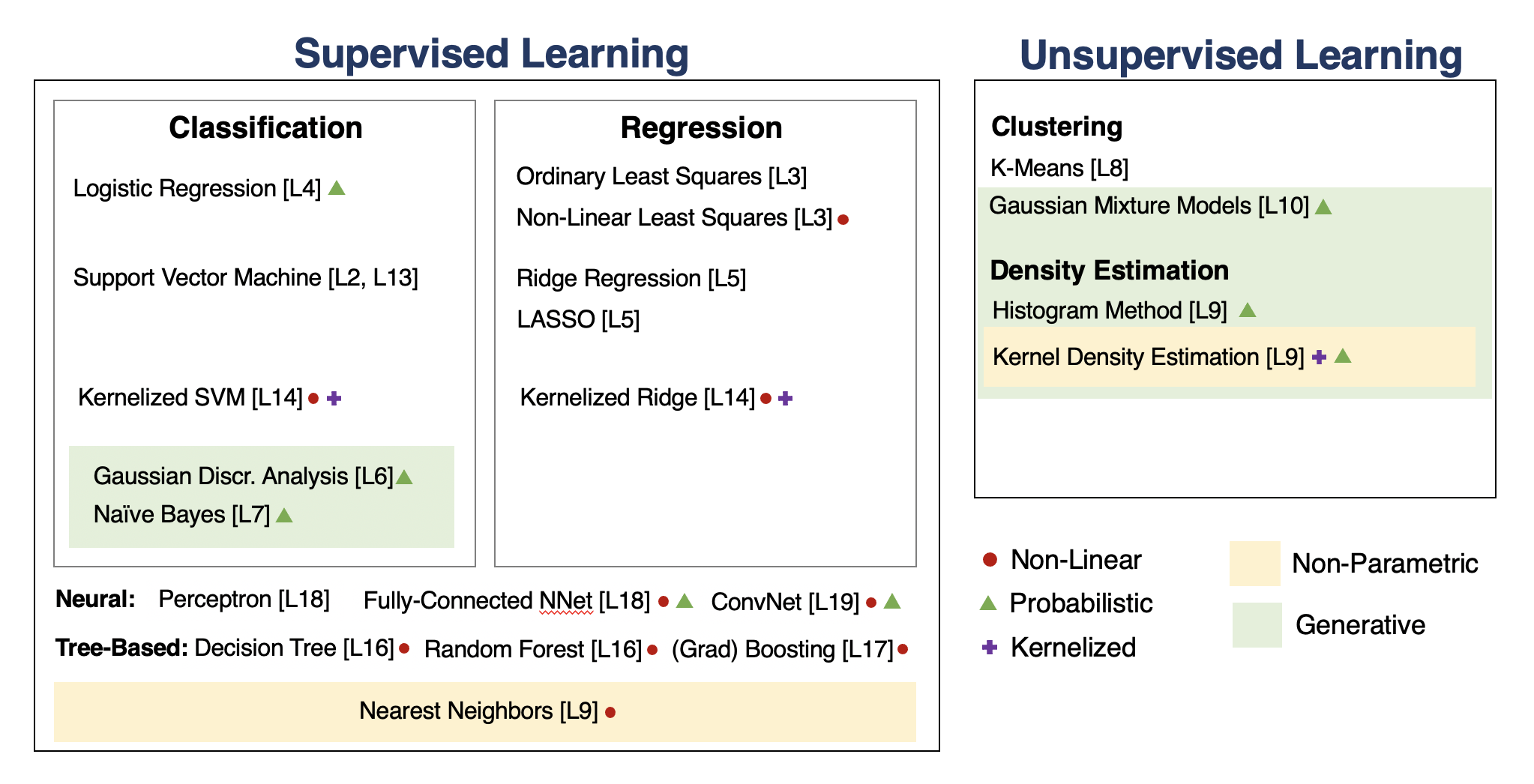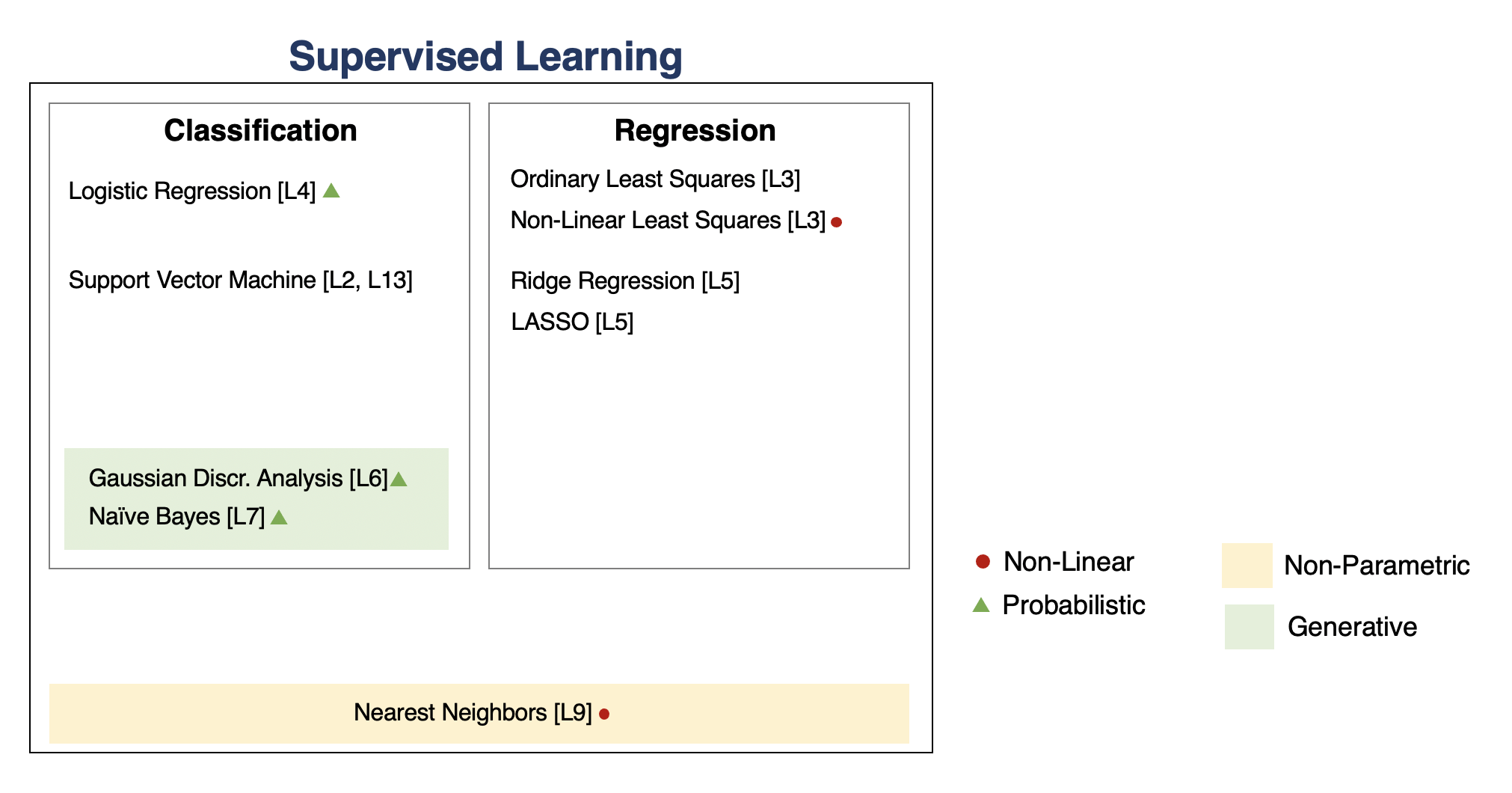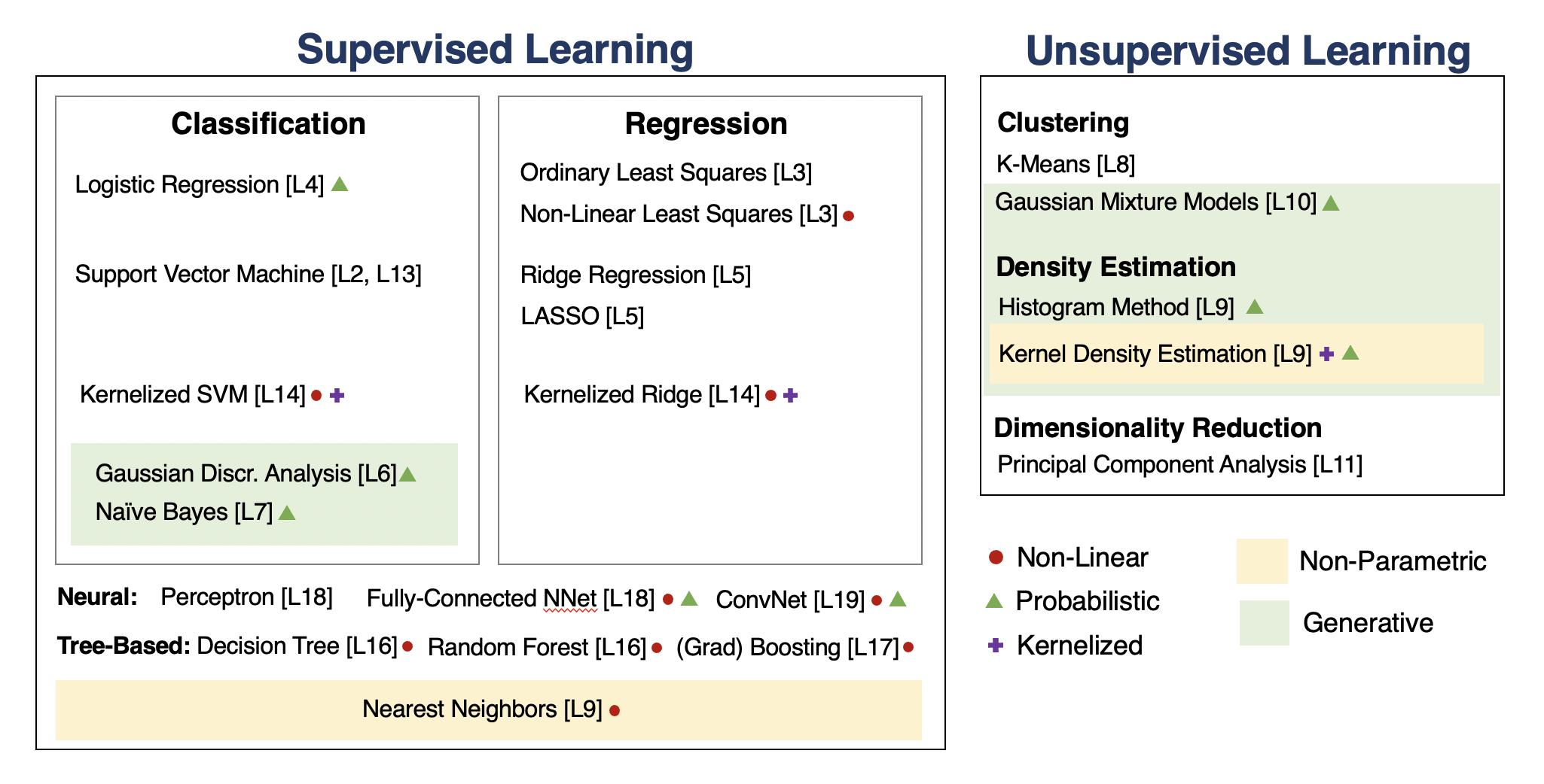 - Non-parametric methods (kernels, nearest neighbors) are also powerful