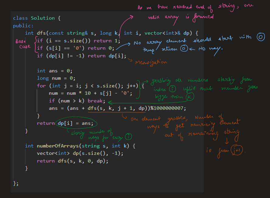count = (count + get(end + 1, s, k, dp)) % mod;